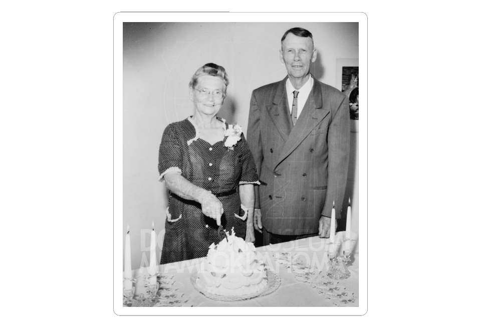 Bill and Fountie Michael of Cardin at the home of Burl Lane, their nephew, who had Lane Oil Company at the stateline in Picher. Identified by their great-grandson, Claude Best