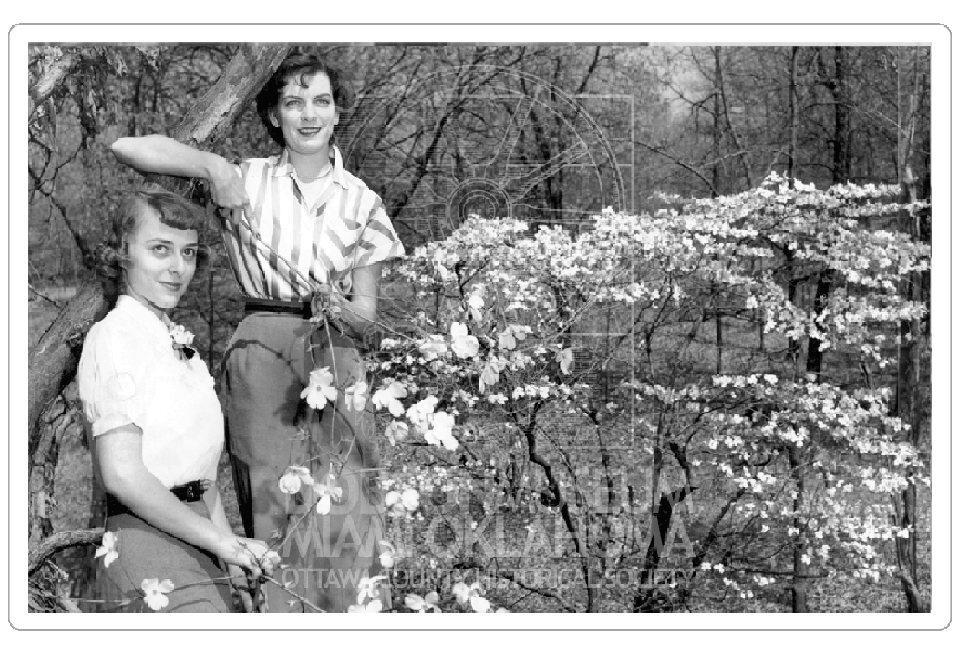 Left to Right: Jerilyn Holt, Charlotte Hoffman, and Linda Kay at the Quapaw Pow-Wow around 1967-68, identified by Mary Seward